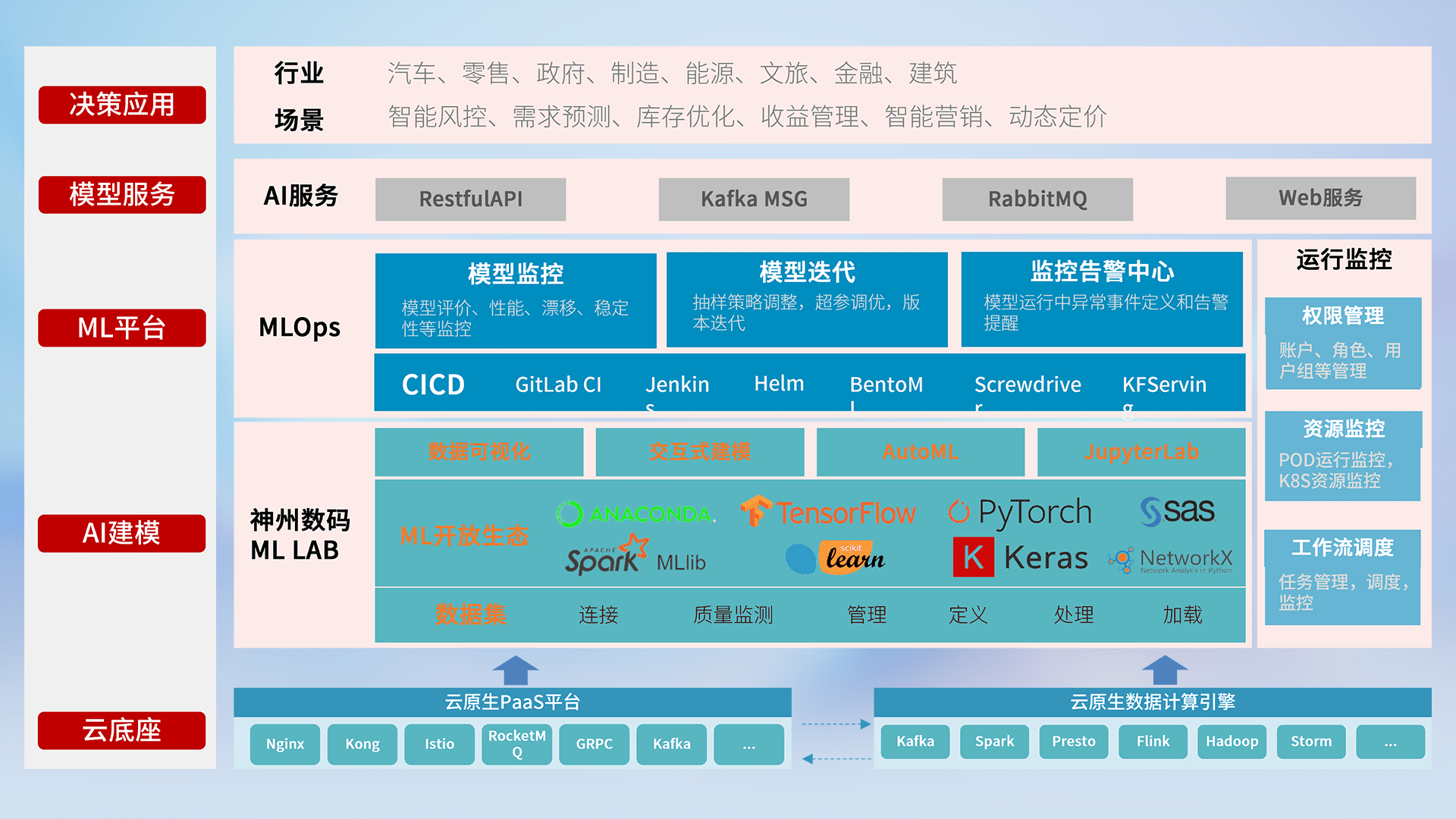 数据+模型双引擎驱动,,面向智能服务场景,,,快速灵活利用AI技术,,支持业务决策,,助力企业智能化转型破局。。。